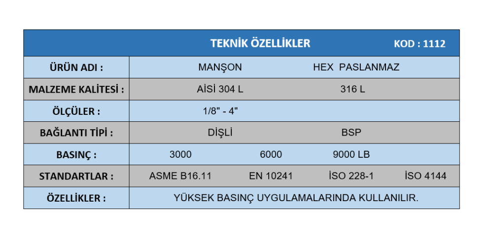 Manşon Hex (Paslanmaz)