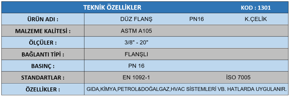 DÜZ FLANŞ PN16 -K.ÇELİK