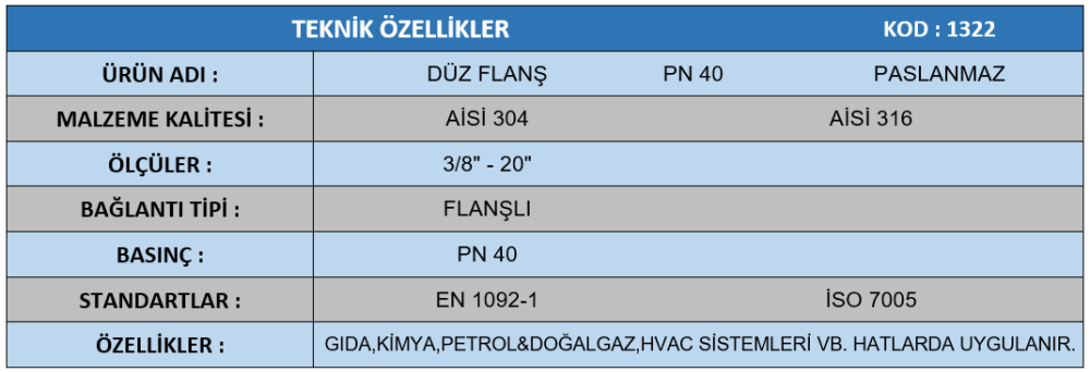 DÜZ FLANŞ PN40 -PASLANMAZ
